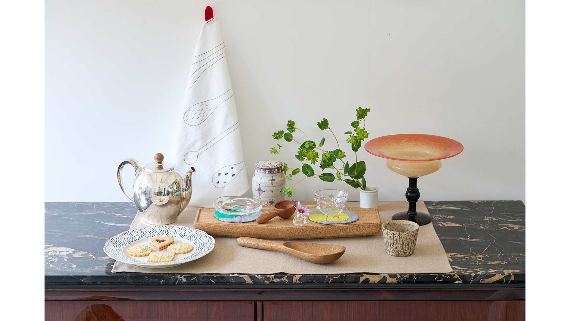 本展では『お茶の時間にしましょう』を合言葉に、さまざまなアーティストやクリエイターとともに、アート、器、アンティーク、そして世界のお茶とお菓子を通して、心豊かな時間をご提案いたします。